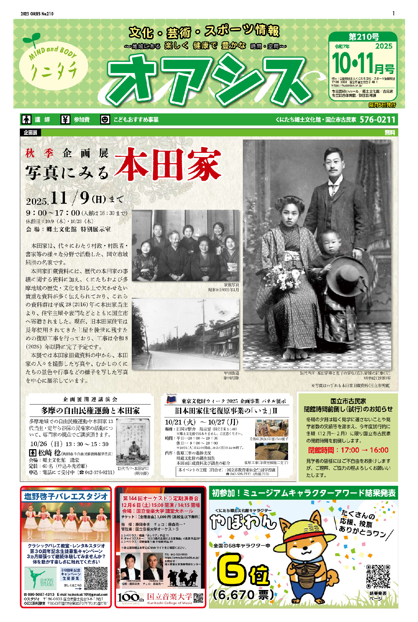 オアシス10・11月号(第210号)を発行しました。