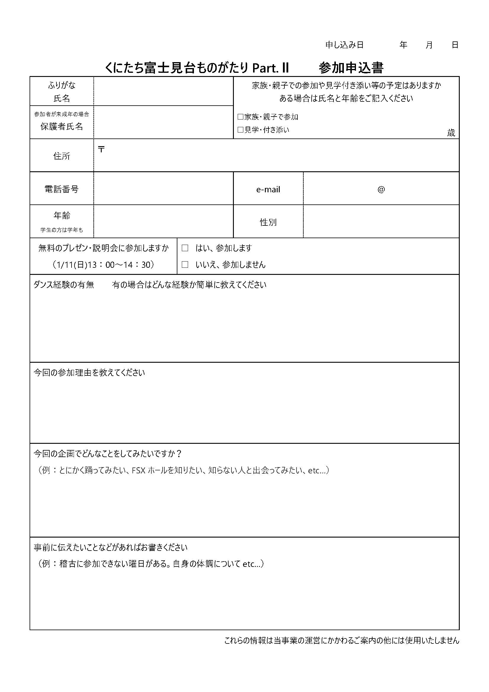 | 申し込み方法 | 申込書に記入してFSXホール窓口に直接ご持参ください 申込書のダウンロードはこちら Googleフォームからのお申込みはこちら |