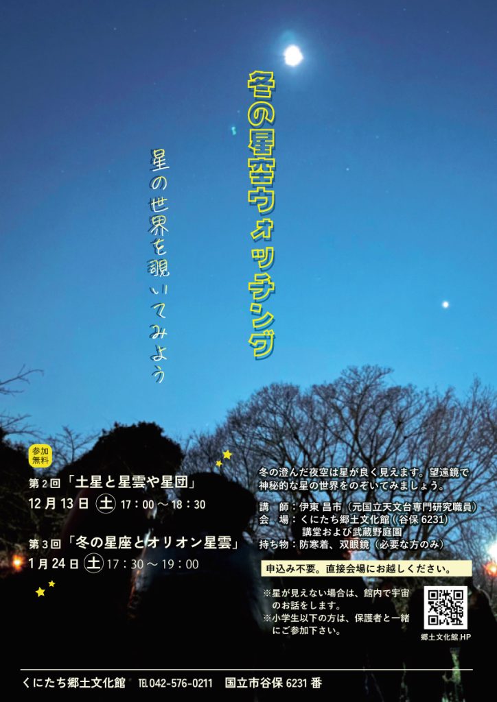 冬の澄んだ夜空は星が良く見えます。望遠鏡で神秘的な星の世界をのぞいてみましょう。