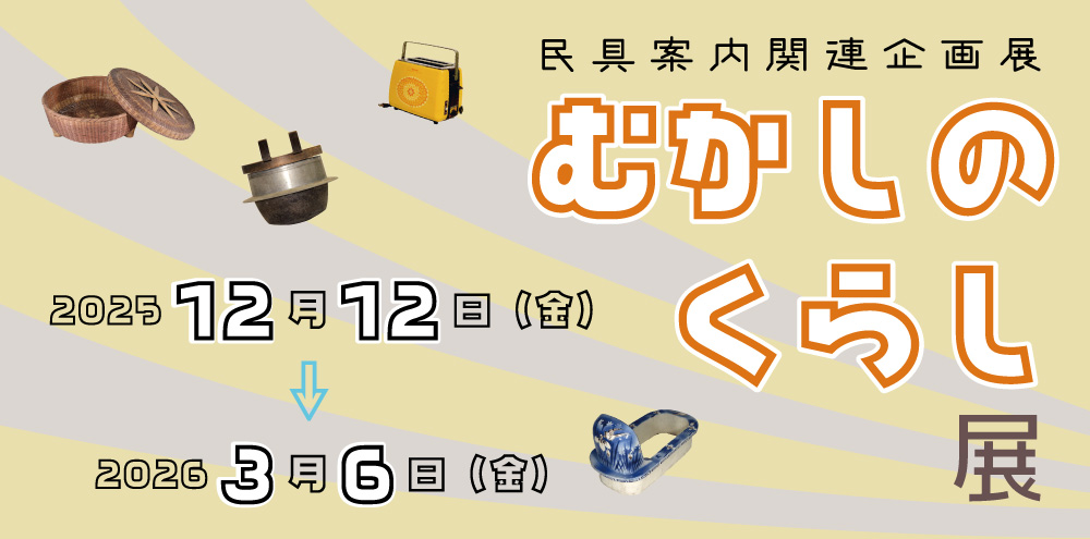 明治から昭和にかけて使われた様々な暮らしの道具を展示します。人々が暮らしを便利に、豊かにするために使ってきた道具から暮らしの移り変わりを振り返ってみましょう。